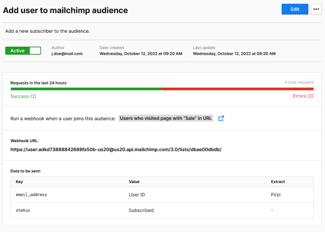 Then, you can set up and enable an activation, which sends selected customer profile attributes to thousands of endpoints through webhooks and automation tools.