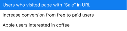 In order to create relevant audiences, you need to group customer profiles matching certain conditions, such as user attributes or behavioral information.