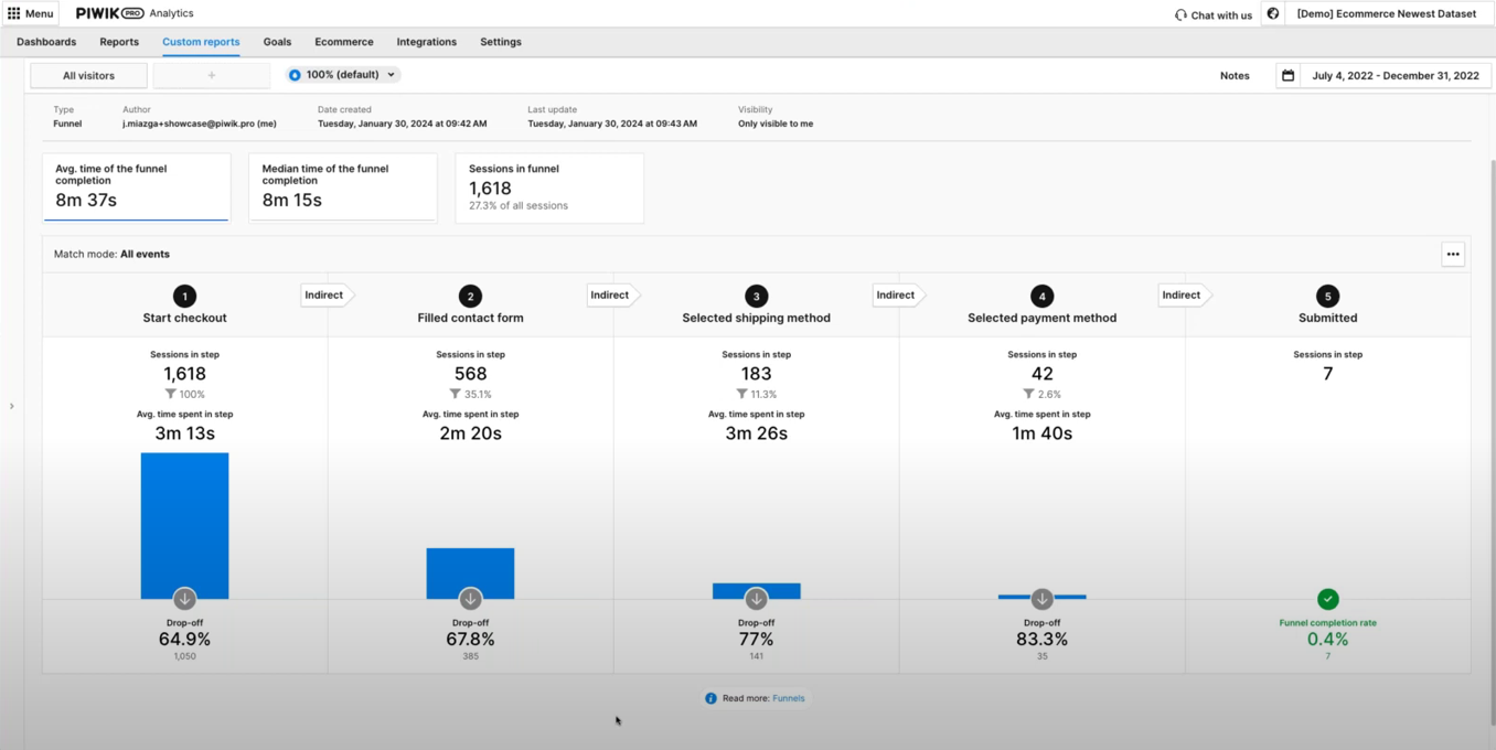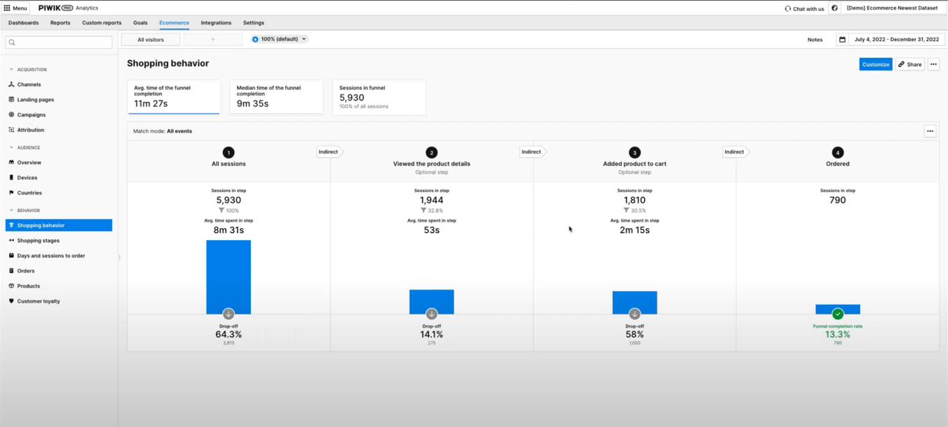 For example, in Piwik PRO, you could create a funnel to get an overall picture of the shopping behavior: