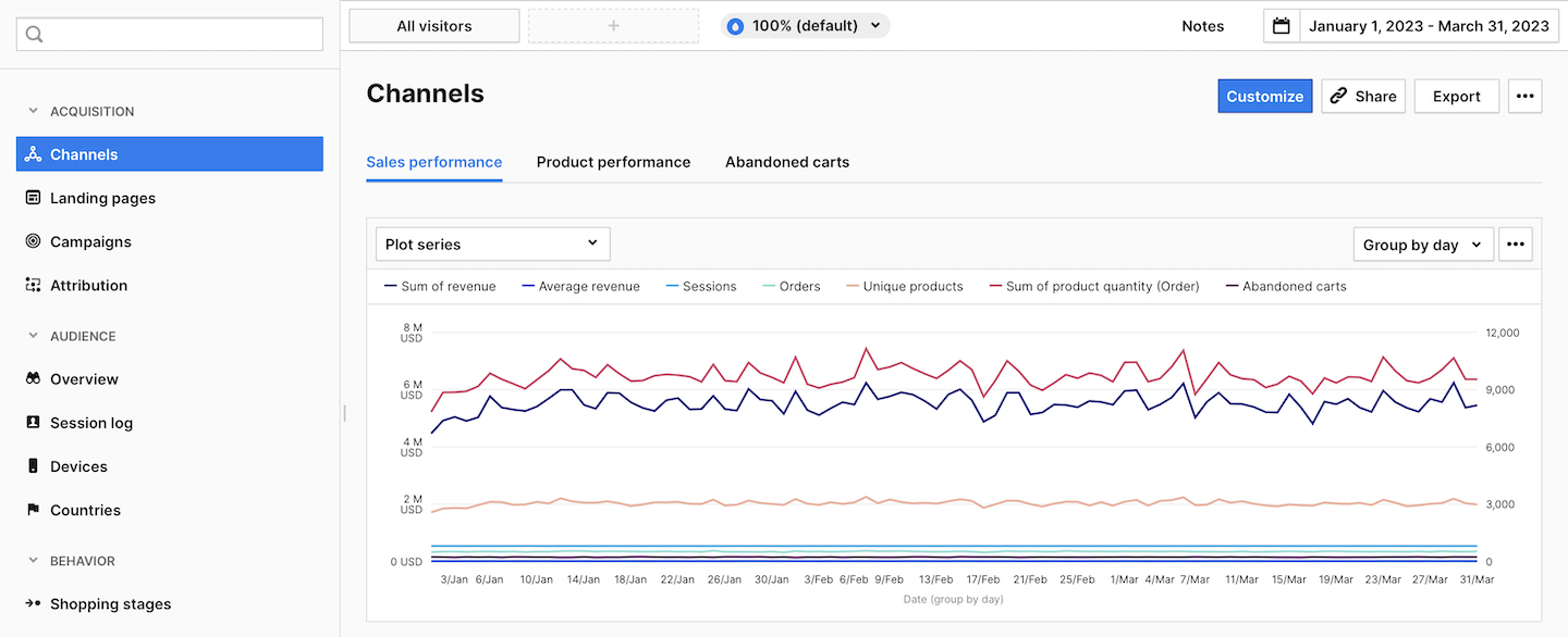 The abundance of data and analytics tools can quickly become overwhelming if you don’t set core sales funnel KPIs. Online businesses tend to use several tools to track different ecommerce KPIs. But to discover critical indicators and metrics, it’s best to set up analytics tracking for your ecommerce website if you haven’t done so already. Piwik PRO is a platform that lets you analyze the KPIs critical to your success.
