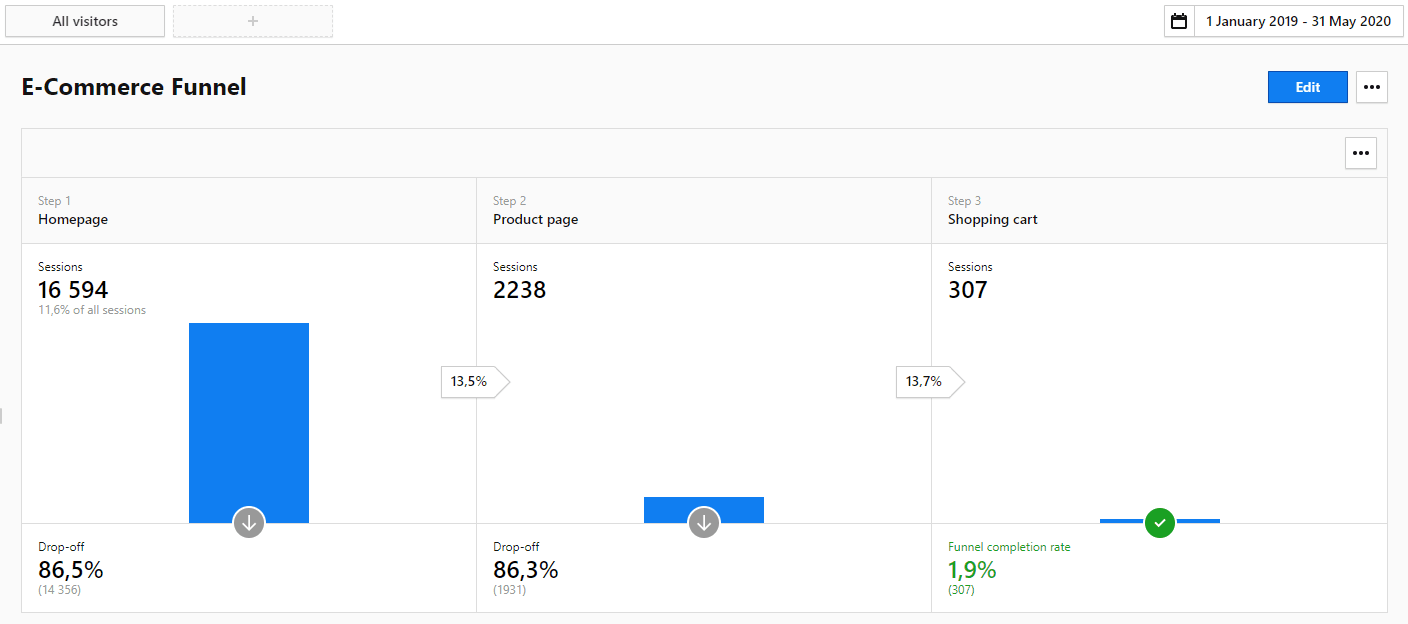A moment in life, however, is often no longer repeatable or even retrievable. Fortunately, the case is quite different in web analytics. You can create funnels, user flows or custom reports at any time of your choosing.