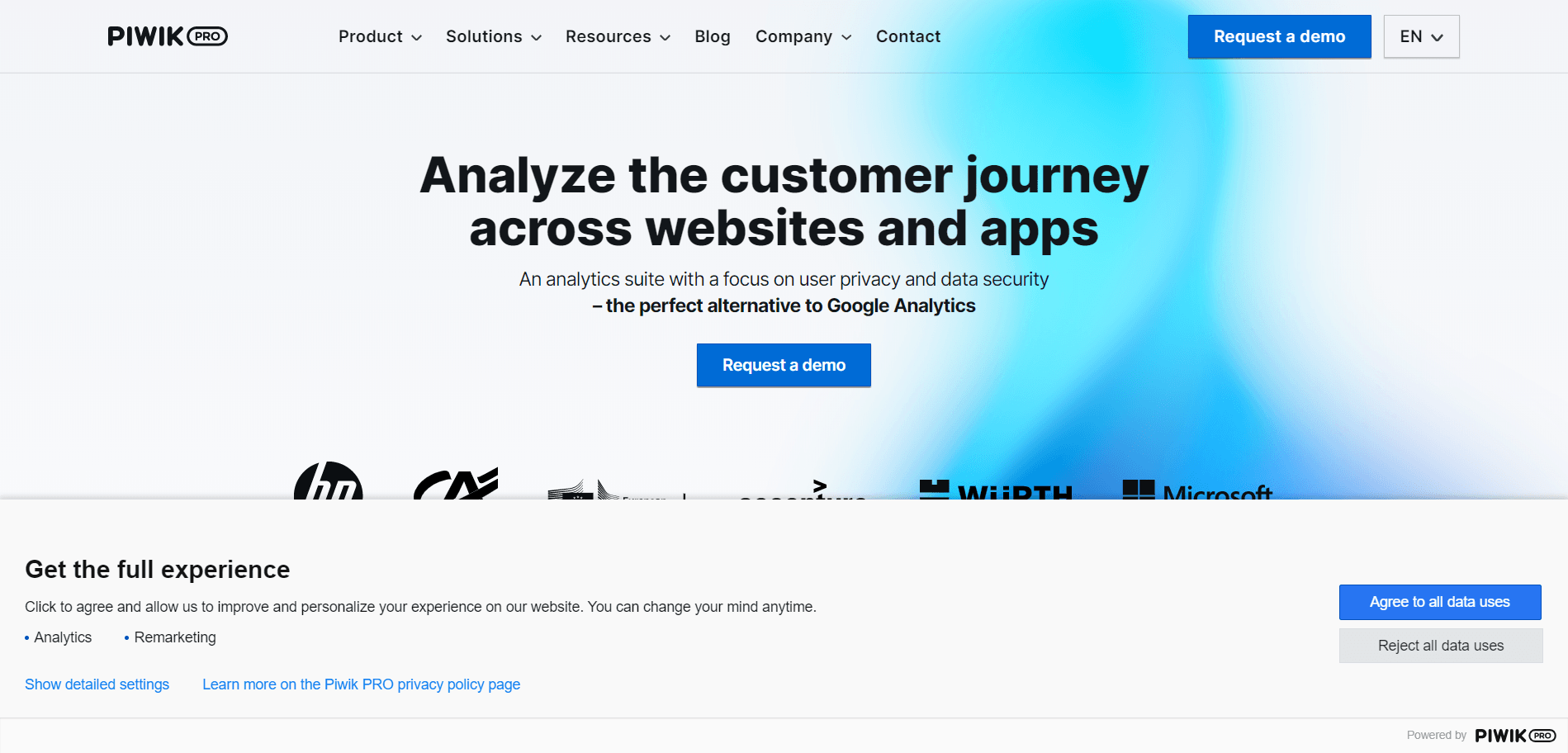 Learn the key differences between Piwik PRO Enterprise, Google Analytics 4, Matomo Cloud, Adobe Analytics, AT Internet, Countly Enterprise, Mixpanel Enterprise, Amplitude Enterprise, Snowplow Enterprise, and Heap Premier.