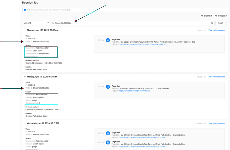- show all sessions for this particular visitorID, presented chronologically