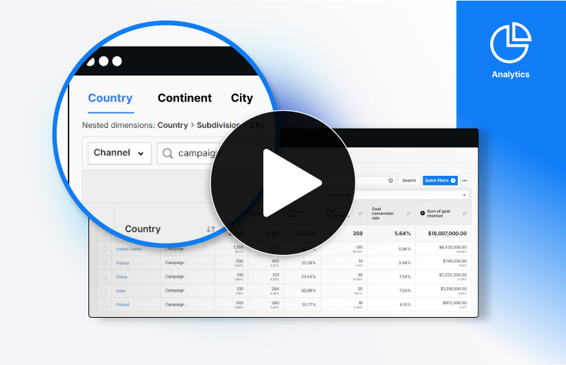 In this Piwik PRO Analytics tutorial video, learn to use built-in filters and features for on-the-fly data analysis, enhancing insights and making swift decisions. We cover combining filters and secondary dimensions, comparing dimension values over time with Line charts, drilling down data with nested dimensions, and briefly explain additional features like report customization, sharing, exporting, scheduling, and more.