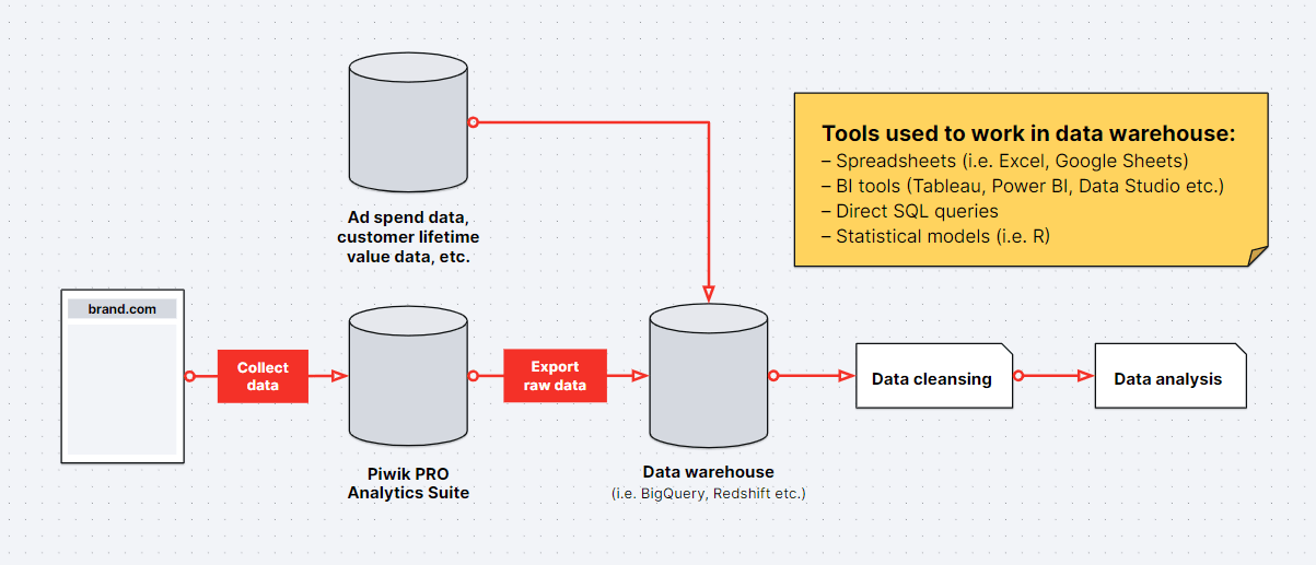 Most marketing departments already own business intelligence platforms, which they use on a regular basis. Naturally, they want to continue using them. So they look for analytics software that integrates easily into their already existing marketing stack. Sometimes, it’s not that easy. But with easy access to raw data, it becomes a completely different story.