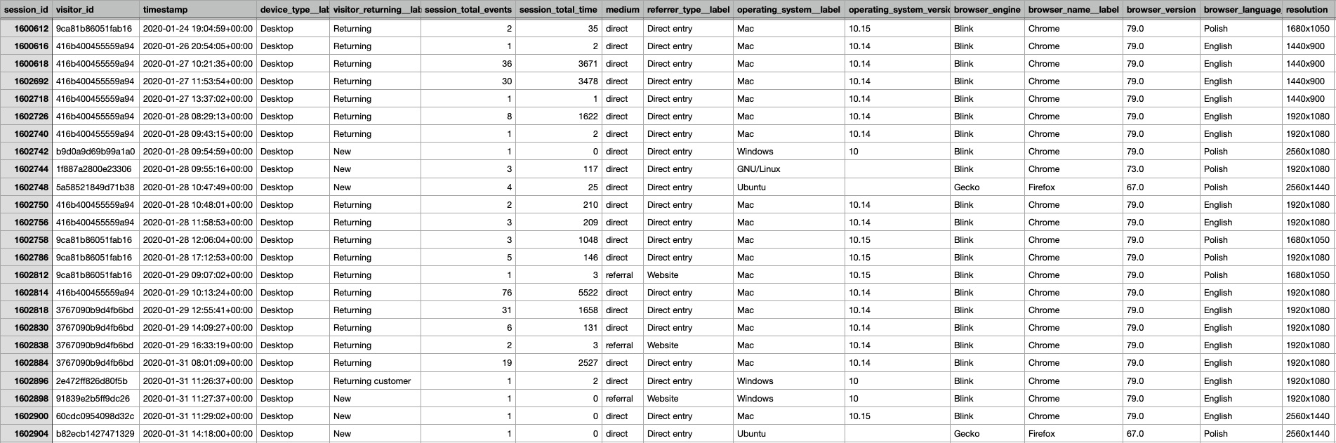 | Google Analytics 360 | via BigQuery | from 100M sessions/month |