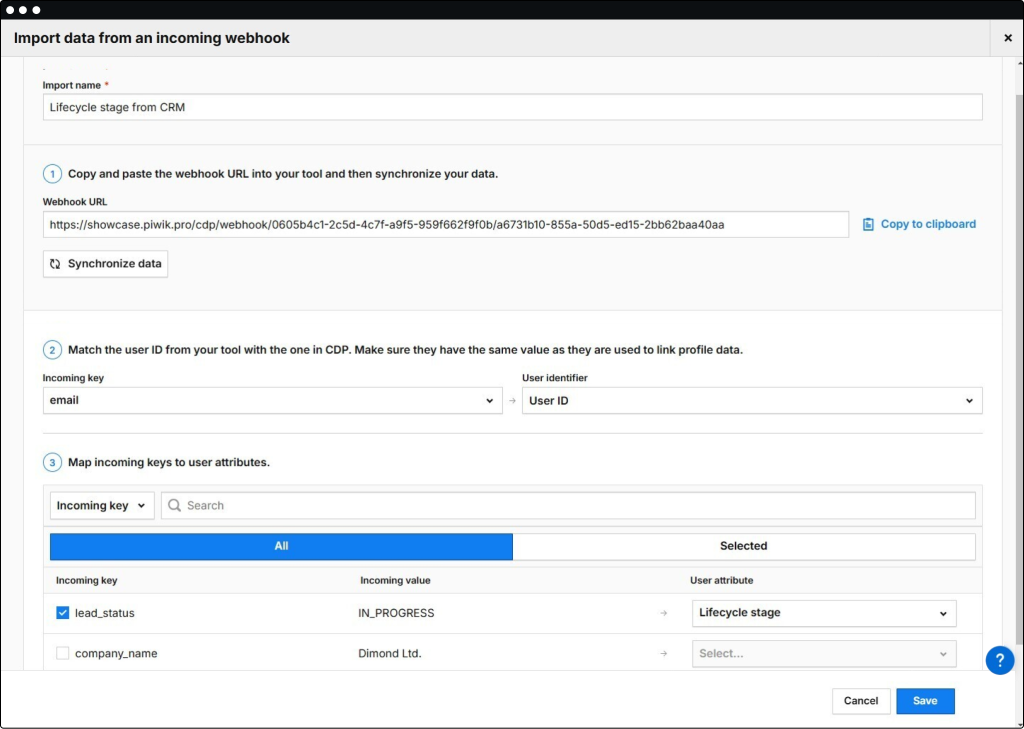 With Piwik PRO’s CDP, you can effortlessly activate data. Utilize webhooks and automation tools to send desired attributes to various destinations, such as CRM, ad platforms, email marketing tools, and internal communication channels. Plus, the intuitive editor and templates allow you to create activations without the help of tech teams, and you can also define advanced integrations if required.