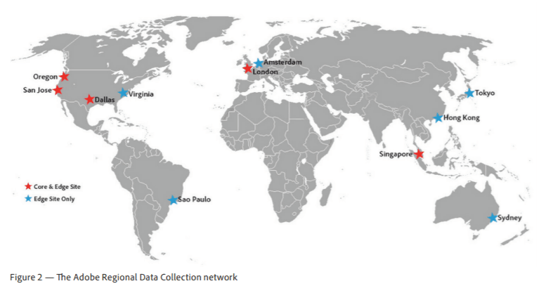 Meeting all those requirements is particularly difficult if you use Google Analytics and/or Adobe Analytics. None of them provides flexibility in terms of server locations. For instance, Adobe Analytics servers are based in the following regions: