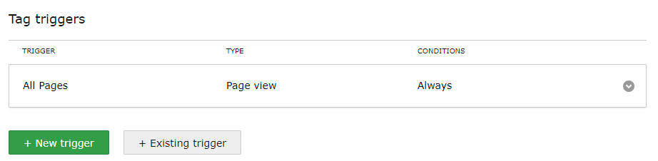 To complete the configuration we have to set the trigger of the newly formed tag. Let’s just set it for pageviews of any page: