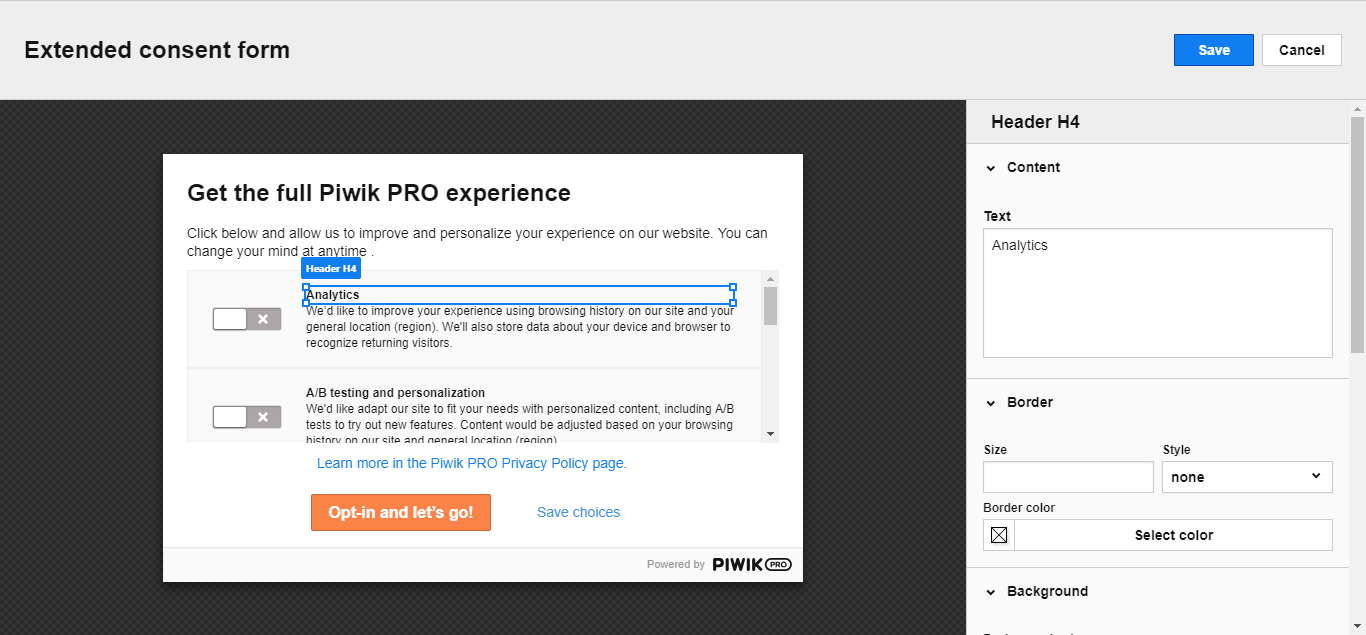 - Piwik PRO Consent Manager: adjusting the popup used to acquire user consent