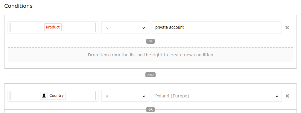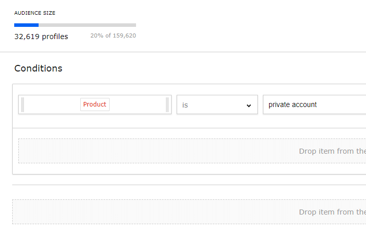 Once we have the value for the Product attribute (people who selected the Private account option when filling out the form) we can configure the audience for the next step – Piwik PRO Personalization. But the following audience could be used not only in Personalization, but also during the configuration any Tag Manager trigger to fire tags only for visitors from this audience.