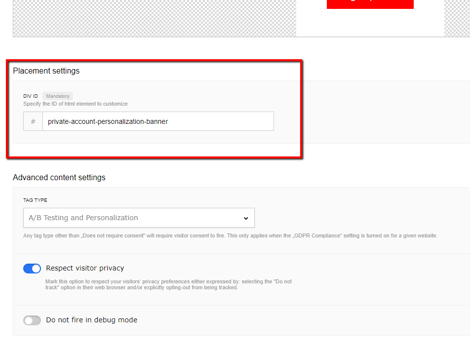 Tip – The ID value of the mentioned div element has to be easily recognizable and correspond to the design created within the Personalization tag. Remember, in time, you’ll have tens or even hundreds of tags and div elements, so use clear naming convention from the beginning.