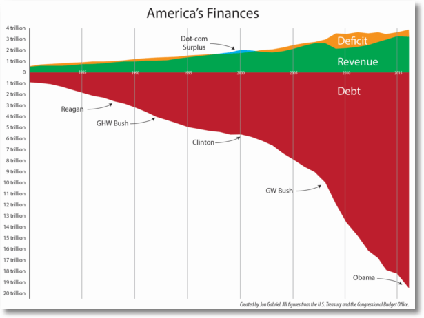But there’s a better way – more direct and less ambiguous – to tell a complicated story in one chart. Have a look at the USA National Debt Burden: