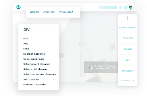 - A/B tests: let you run tests of images, website copy, and UI components. You can target traffic from specific mobile, desktop, or tablet devices and set different goals, such as selling more products, getting more registrations or getting more page views, and more.