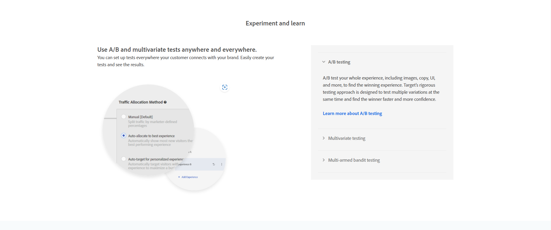 - A/B and multivariate testing tools: web, mobile, over-the-top (OTT), and in-store.
