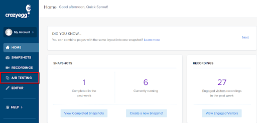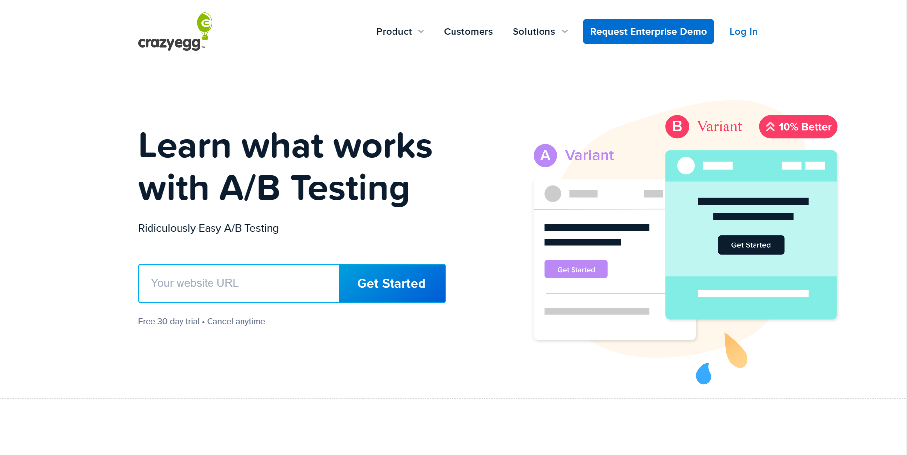 Crazy Egg is a tool that lets you track how users interact with your website. It has a built-in A/B testing platform to complement its heatmaps.