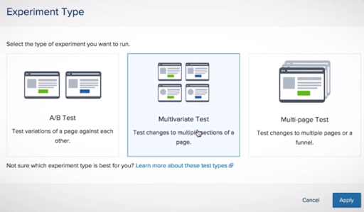 - Multivariate testing: using the MVT testing setup, you can change a cluster of page elements in each version to find the most effective combination.