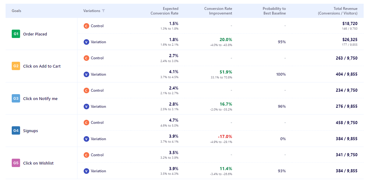 - Audience-specific messages and personalized offers: you can also create variations for the elements on your webpage and determine which combination works best.