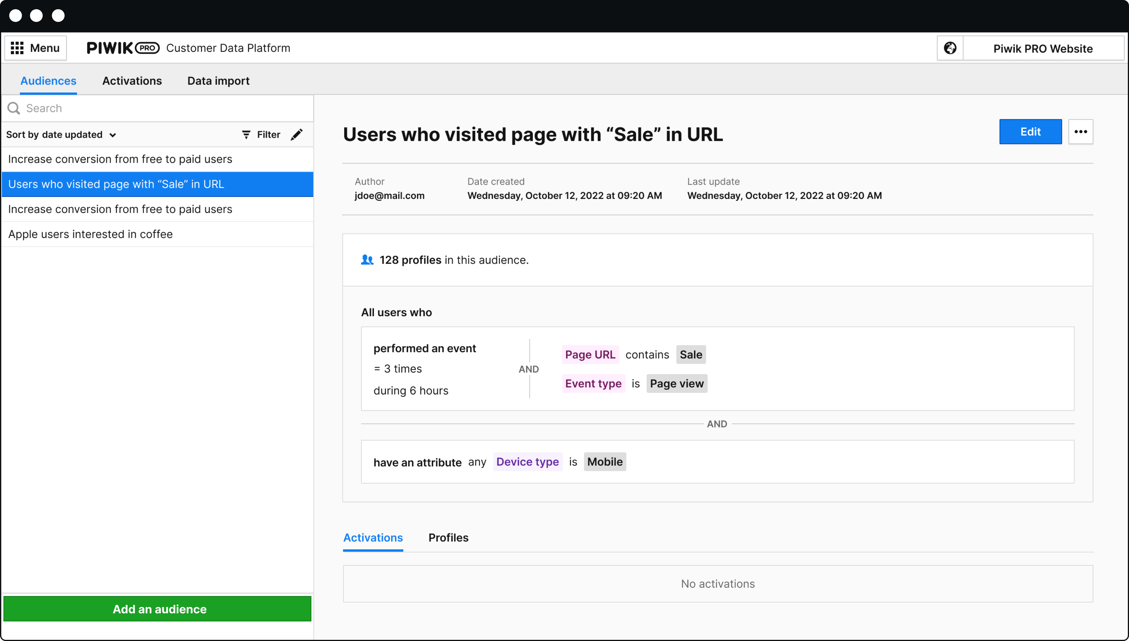We have a post explaining how to conduct audience targeting in more detail: How to perform successful audience targeting with a CDP.