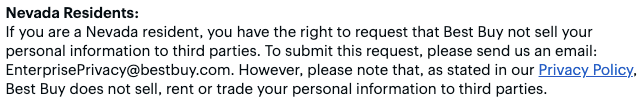 In February 2019 an addition to 603A was introduced to address businesses selling covered information to third parties. The bill gives residents of Nevada the right to opt out by stating: