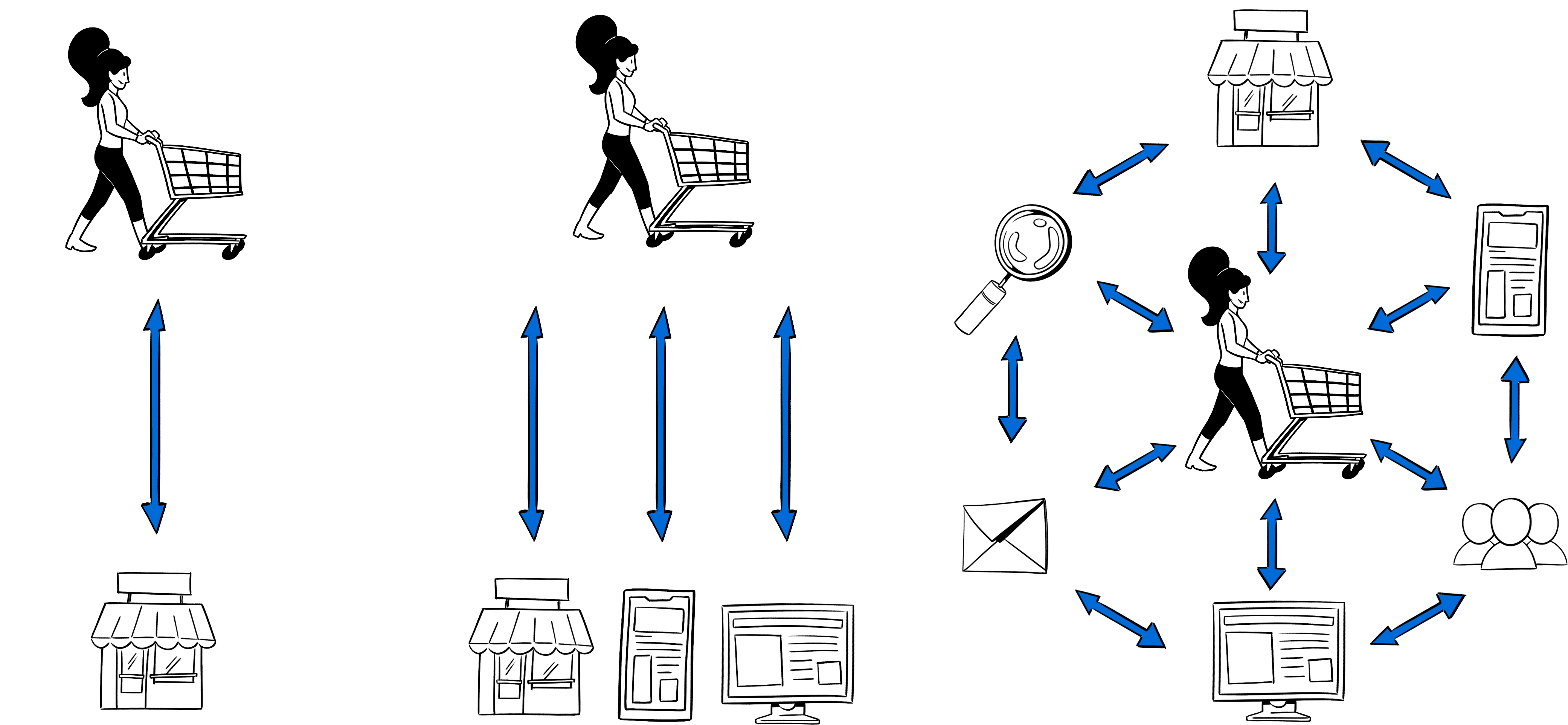 | Single distribution channel. | Multiple independent channels. | Integrating and maintaining consistency of customer experience across all channels. |