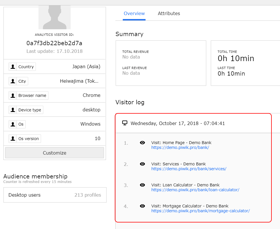 If they log in and want to apply for a time deposit, but first spend some time moving around your website, you can learn about all their behavior. Just take a look at their profile: