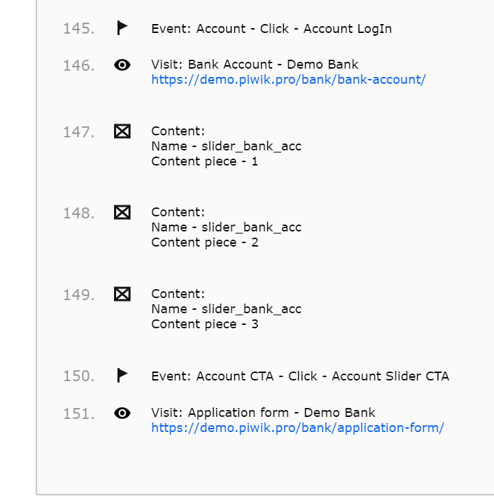 Here you have a list of all the events and touchpoints relating to your customer’s post-login activity: