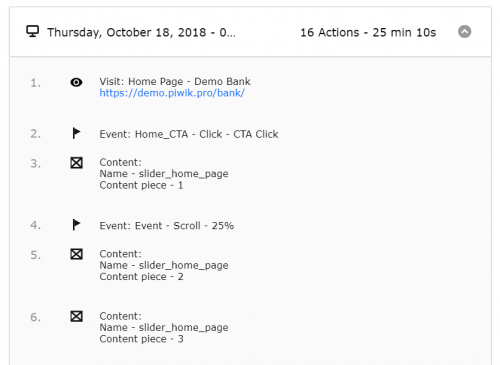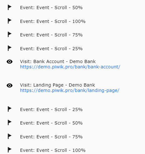For instance, here you’ve got a visitor’s log that shows you how the user interacts with the site.