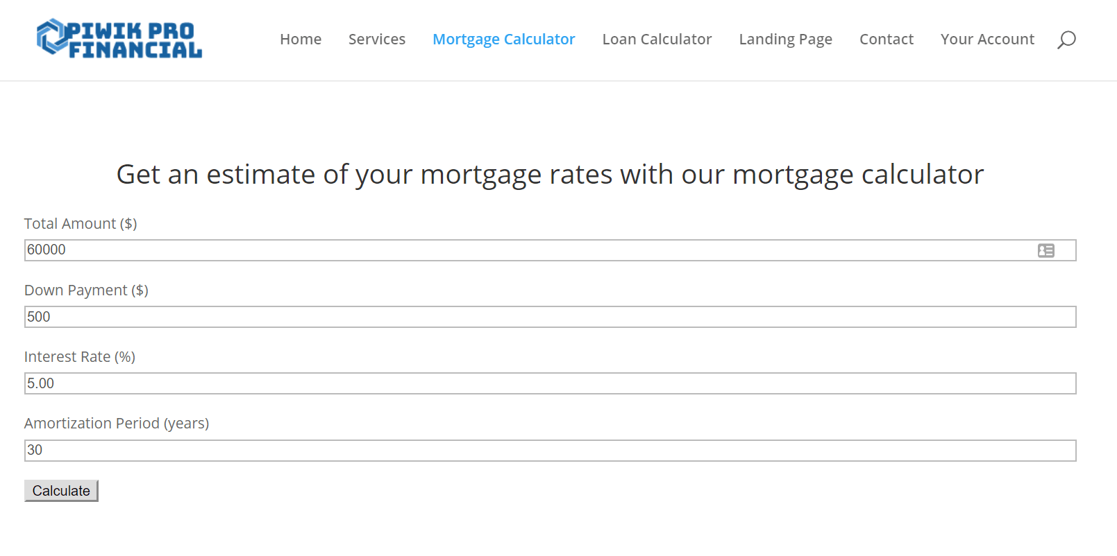And now, as your visitors move away from the slider, they navigate to the mortgage calculator and fill in all the required fields.