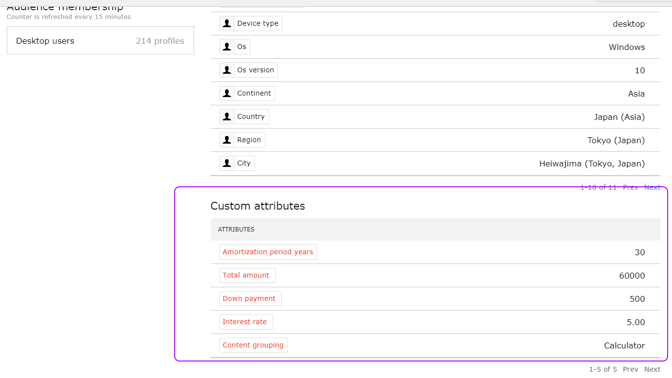 After they hit the calculate button, all the data goes straight to the single customer view profile. You can find it under the Attributes tab:
