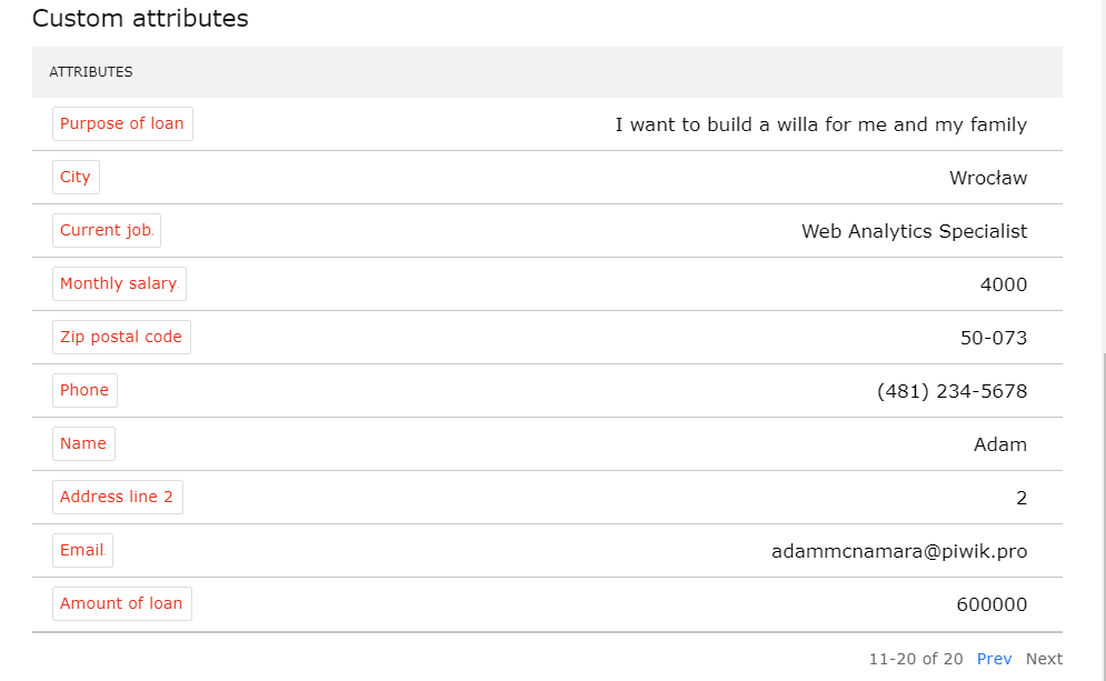 Finally, you have a concrete profile of your prospect. However, judging by the profile, you can gather that not all form fields were completed, because otherwise more data would be visible. Maybe the user found it too complicated, or maybe the form demanded too much information. That’s a valuable hint for you when redesigning the form: simplify it to make it more user friendly.
