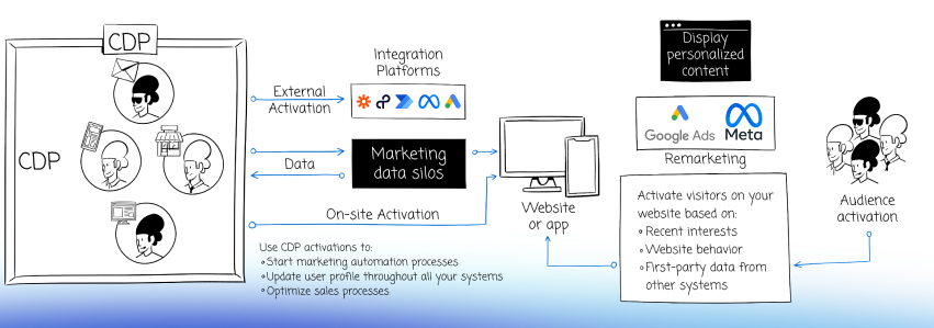 - Customer Data Platform offers the ability to integrate user data from multiple sources and segment them into relevant audiences. You can gain detailed insights into customer behavior and act on the data.