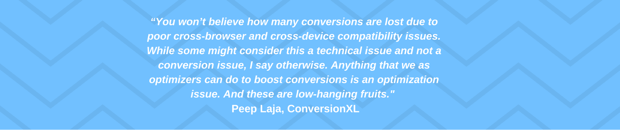 You’ve already done some analysis but we still don’t have a straightforward answer to why our page is getting such a high bounce rate and few conversions. So it’s time you turn to cross-browser testing. This is the second pillar of technical analysis and it helps you to get a closer look at different internet browsers.