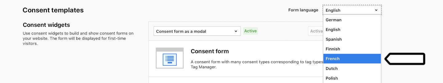 Your site visitors can see consent forms in their language. Consent forms in our Consent Manager are now available in: