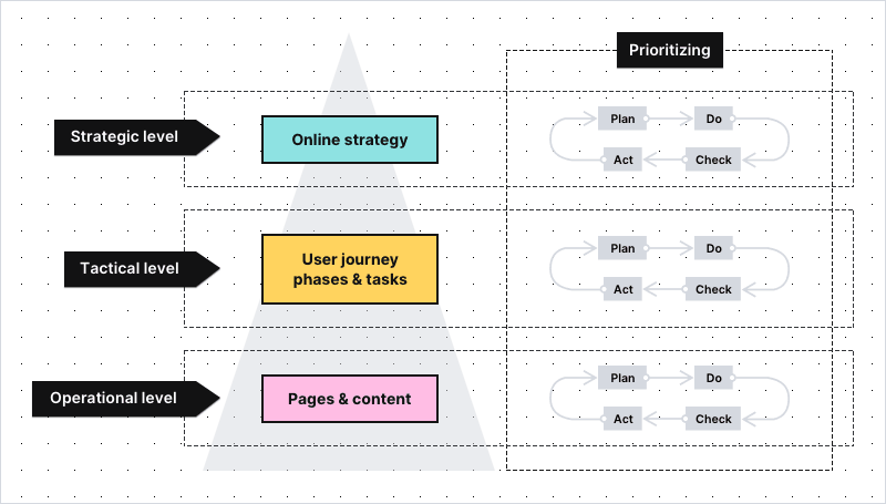 The level of tactical goals comprises two dashboards – one concerning stages of the user journey and the other one that concerns the tasks users undertake on your website.