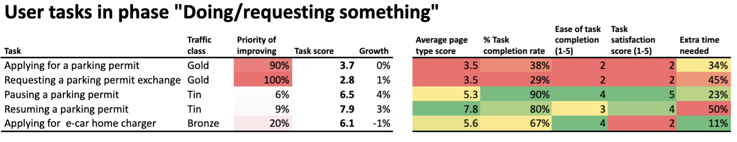 Those are the tasks with the biggest rate of metrics marked in red and orange. The numbers say that they’re difficult to complete, leave users unsatisfied with their experience and take longer than expected. Finally, their “Priority of improving” indicates that fixing them is crucial for optimizing your website’s performance.