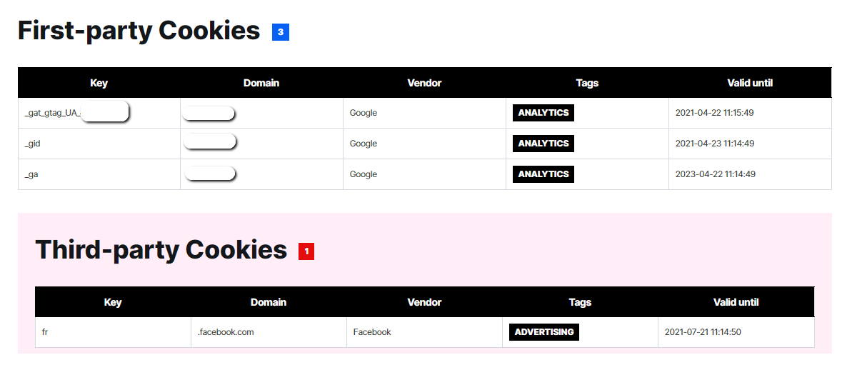 The report gives you a general idea of how many cookies the website is using and if any third-party cookies were found.
