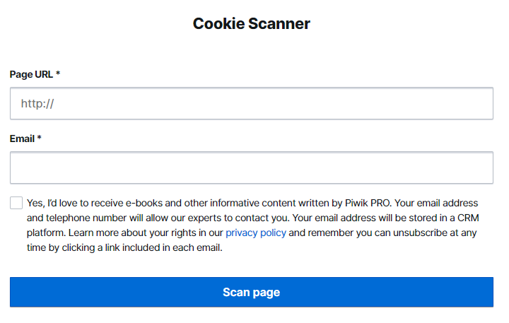 The second method for conducting a cookie audit involves using a cookie scanner. Let’s look at how Piwik PRO’s Cookie Scanner works: