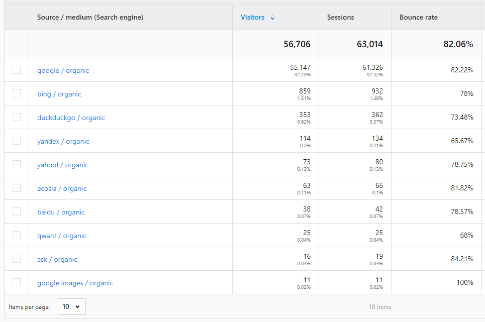 - Search Engines: This table ranks visitors who came from different search engines. You will find out which engines are the most preferable among your audience