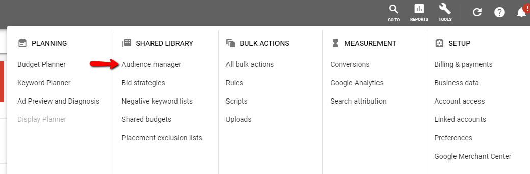 Go to Audience Manager in Google Ads: