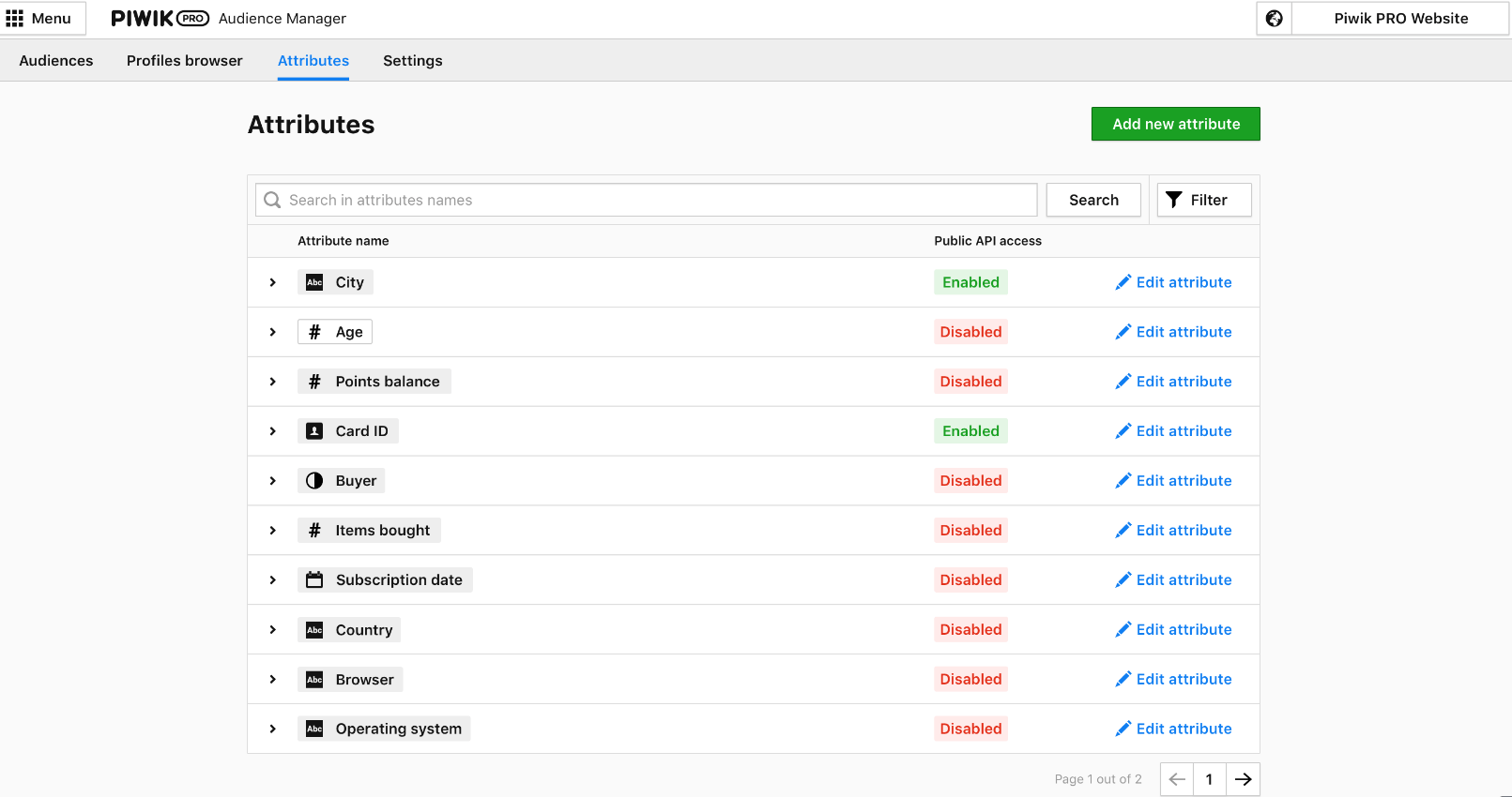 - Our Audience Manager (Customer Data Platform) has received a brand new design for attribute lists. Also, from now on user profiles will be automatically enriched with selected location data.