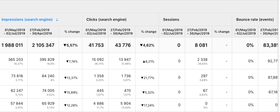 Thanks to the Comparison feature, available also at the chart and metrics level, you can put the values of your KPIs for the given time periods side by side and see the difference in percentage terms. And you will know exactly how the value of your KPIs over those two periods differs.