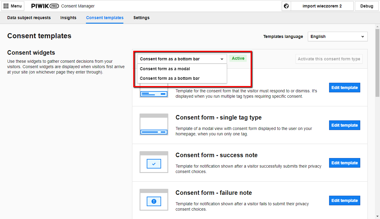 - Consent Manager has a new template for messages, and now you can choose between a modal or a new bottom bar. Expanded options make it easier for you to collect consents in a more user-friendly way.