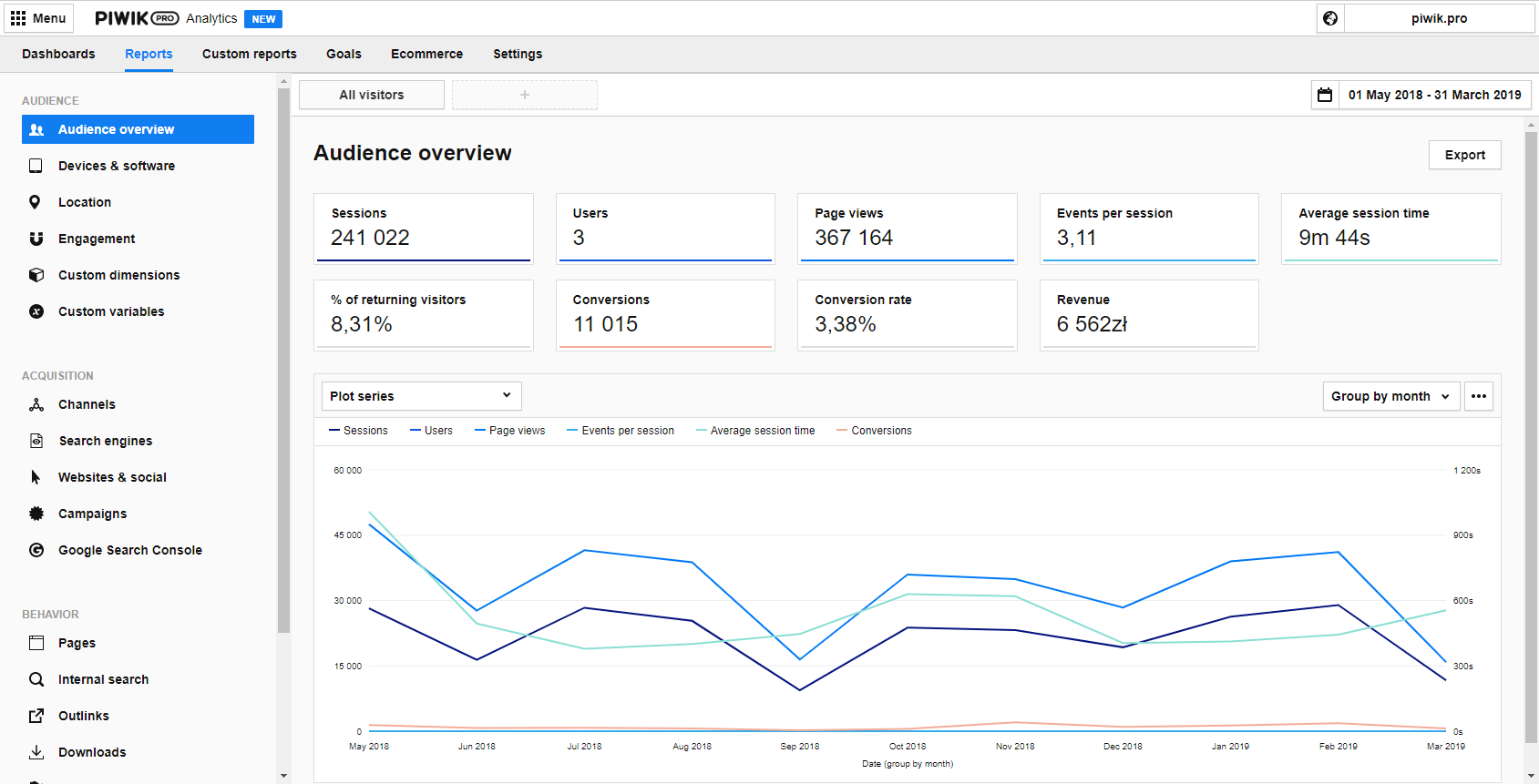 As we’ve already mentioned, advancements in reporting functionality allow you to customize almost every element of Piwik PRO reports. Never get stuck with a default setup! Just add or remove analytics bits and pieces as your needs change. That’s real flexibility.