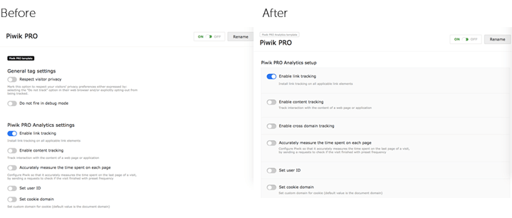 - Cross-domain tracking option in Piwik PRO Analytics tag template